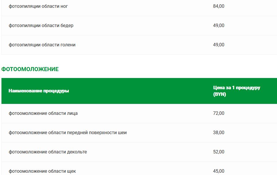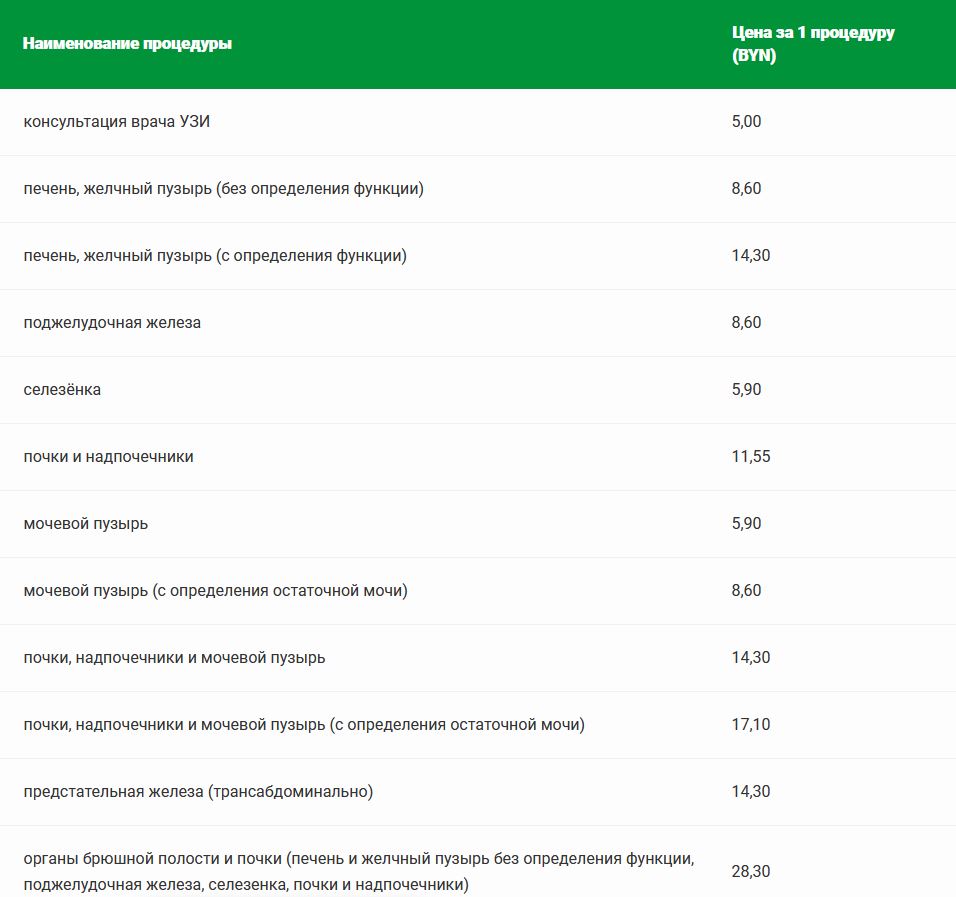 Прейскурант цен на платные медицинские услуги в санатории «Солнечный»